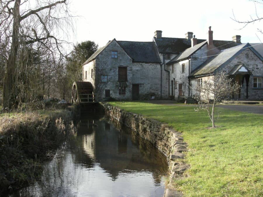 The present buildings date from the 17th century onwards with the main machinery installed in 1868. Taking water from the River Monnow, the mill will be grinding flour from locally grown organic wheat.